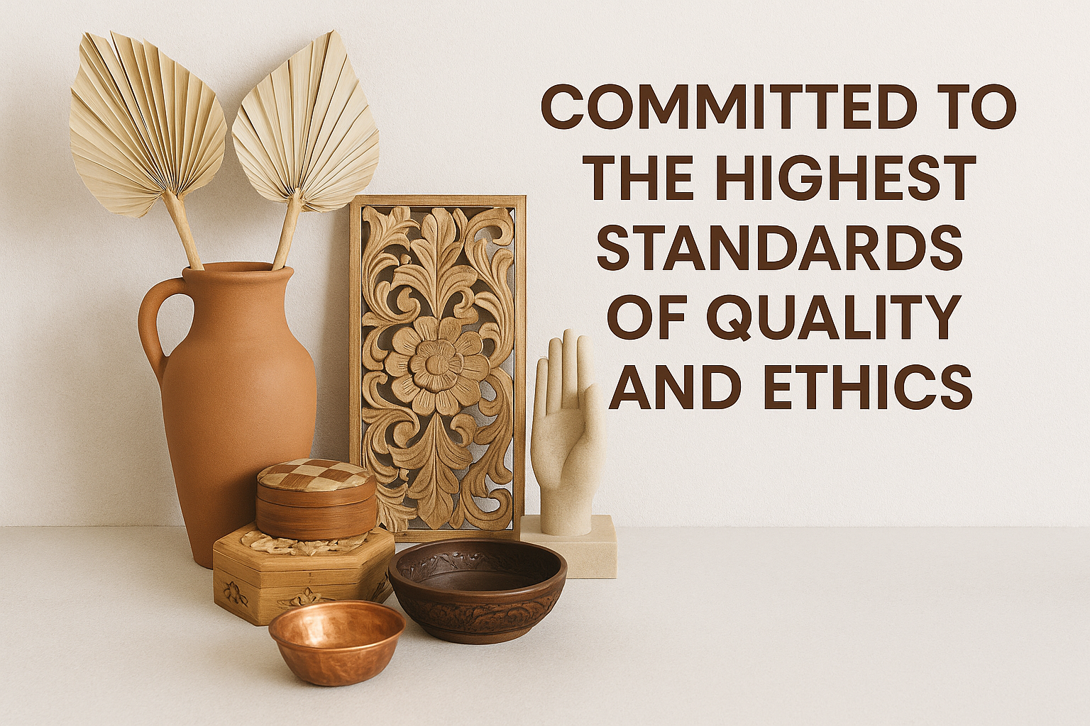 To be a leading force in the international trade of premium Indian products, fostering sustainable growth, celebrating craftsmanship, and innovating responsibly to enrich lives and communities across the globe. Delivering outstanding products that showcase India’s heritage and creativity. Building enduring global partnerships by prioritizing customer satisfaction and trust.